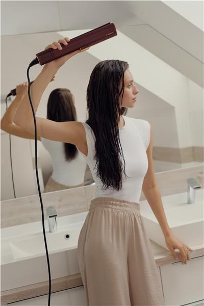 Místo tradičních horkých destiček pracuje s přesně řízeným proudem teplého i studeného vzduchu. Díky tomu můžete vlasy narovnávat ihned po umytí – rychle, pohodlně a bez rizika poškození.