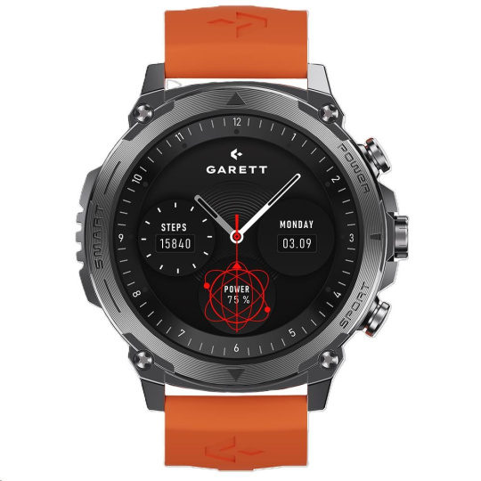 - Sada obsahuje: GARETT smartwatch, přídavný silikonový pásek, nabíjecí kabel, nástroj na úpravu náramku, QSG návod
