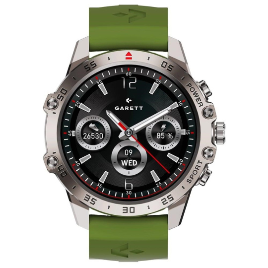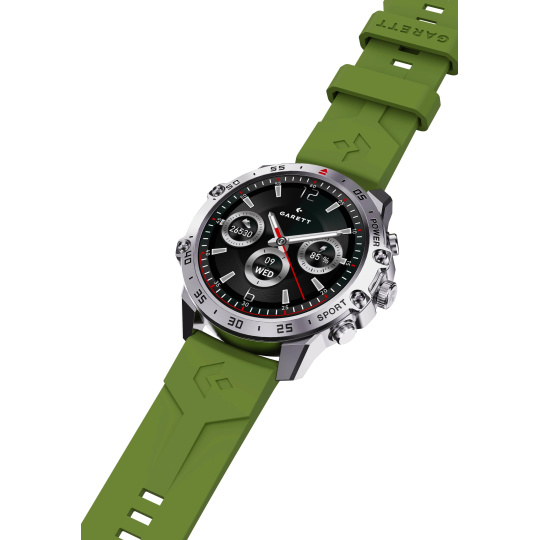 - Sada obsahuje: GARETT smartwatch, přídavný silikonový pásek, nabíjecí kabel, QSG návod