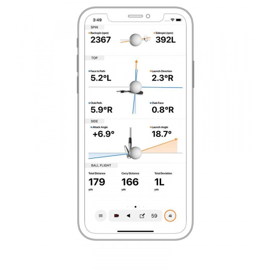 Vylepšete si konzistentnost švihu pomocí sledovaných metrik, k nimž mimo jiné patří rychlost hlavy hole, rychlost míčku, rotace míčku, úhel odpalu, směr odpalu nebo smash factor.