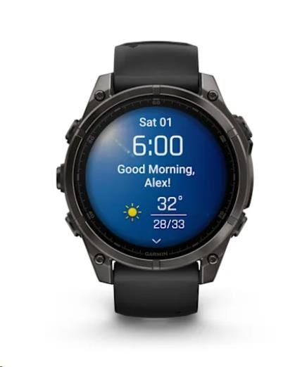 Na hodinkách můžete přijímat e-maily, textové zprávy a upozornění na spárovaném telefonu Android nebo Apple. Hodinky rovněž podporují platby Garmin Pay, abyste se při svých dobrodružstvích mohli vydat kamkoliv a nestarat se o to, že jste něco zapomněli doma. S hodinkami Garmin fénix 8 máte totiž vždy všechno důležité po ruce - na svém zápěstí.