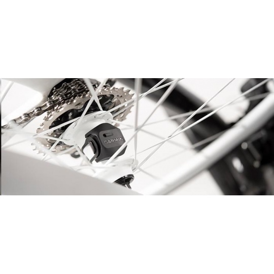 Čidlo rychlosti Garmin je schopno poskytovat přesnou rychlost a projetou vzdálenost bez ohledu na kvalitu příjmu GPS signálu, hlavně pak v místech, kde GPS příjem není nebo je rušen. Používá se při indoor jízdě na cyklistickém trenažéru, nebo v případě, kdy chcete mít měřenou šikmou vzdálenost (GPS obvykle měří vodorovné vzdálenosti). Čidlo najde uplatnění i při jízdě na horském kole v hustém lesním porostu, zejména pak při nízkých rychlostech. Zde může GPS cyklopočítáč vyhodnotit Vaši rychlost jako nulovou, což vede při zapnuté funkci "Auto Pause" na přístroji Garmin k pozastavení záznamu z Vaší jízdy. S čidlem rychlosti tomuto pozastavení předejdete a vždy budete mít ty nejpřesnější údaje o rychlosti a vzdálenosti. Čidlo má velmi jednoduchou montáž a nastavení. Na rozdíl od starších čidel se u tohoto čidla nepoužívá magnet nebo jiný protikus ve výpletu kola. Čidlo se montuje na nábu/střed předního nebo zadního kola. Montáž je tak jednoduchá, že zabere 1-5 minut času. Po namontování se čidlo spáruje se sporttesterem a během prvního kilometru jízdy s GPS si sporttester čidlo sám automaticky zkalibruje, vypočte a nastaví přesný obvod vašeho kola. Do menu není proto obvod kola nutné zadávat ručně.