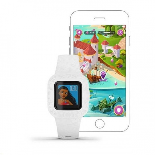 PŘÍBĚHY a DOBRODRUŽSTVÍ - S barevnými řemínky Blue Stars, Digi Camo nebo Lilac Floral budou děti objevovat nová fascinující místa, řešit zajímavé hádanky a zapisovat si do sešitu vzpomínky na úžasná dobrodružství. Uvidí pyramidy starověkého Egypta, naučí se cviky pro zahřátí v mrazivé Antarktidě nebo se setkají se žraloky na Velkém bariérovém útesu. Nákupem nového řemínku získáte přístup k novým dobrodružstvím v aplikaci (aktivační kód je součástí balení s novým řemínkem). Příběh odpovídá motivu řemínku a vše můžete spravovat v rodičovské mobilní aplikaci a rozhodnout, co se bude dít dnes. S řemínkem s Černým panterem nebo Iron-Manem děti při dosažení denního cíle (60 minut aktivity) postupují ságou Infinity, dobrodružstvím studia Marvel, která je inspiruje k lepším výkonům. S vaší pomocí děti vstoupí do nových dobrodružství a prožijí vzrušující chvíle ze ságy Infinity společně se svými oblíbenými hrdiny studia Marve. S řemínkem z řady Disneyovských princezen mohou objevovat nová dobrodružství a kouzelný svět princezen Ariel, Belly, Jasminy, Mulan a Lociky. Pomohou Locice a Flynnovi Rychlíkovi utéci před stařenou Gothel, společně s Mulan zachrání císaře nebo s Jasminou prozkoumají Jeskyni zázraků. Budou pomáhat Avengerům kazit Lokiho ničivé plány, zachraňovat svět před Ultronem nebo cestovat kvantovým světem, získávat Kameny nekonečna a bojovat s Thanosem. Čím lépe si plní (případně překračují) cíle denní aktivity, tím větší část příběhu uvidí.