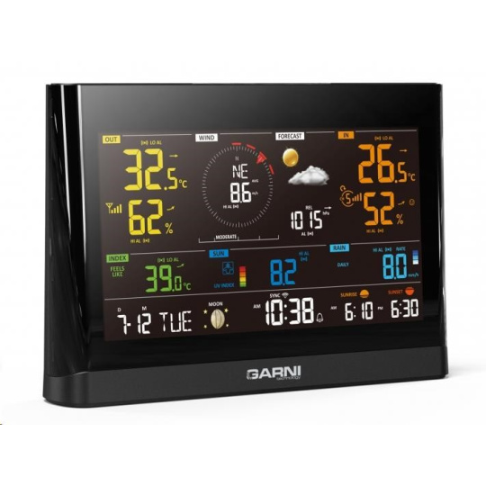 Wi-Fi meteorologická stanice model GARNI 1025 Arcus 2GEN s integrovaným bezdrátovým čidlem 7-v-1, která je vybavena mnoha funkcemi shromažďuje přesné a podrobné údaje o počasí. Integrované bezdrátové čidlo pracuje na frekvenci 868 MHz a měří vnější teplotu a relativní vlhkost, rychlost a směr větru, dešťové srážky, barometrický tlak, UV index a intenzitu slunečního záření. Výrobek používá vysoce přesná švýcarská čidla SENSIRION a umožňuje kalibraci některých meteorologických veličin.