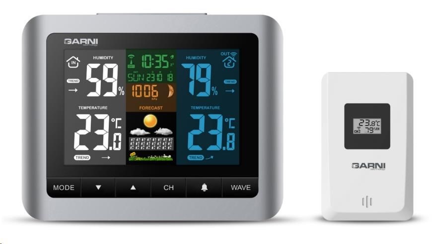 - možnost použití až 3 bezdrátových čidel GARNI 045H (jedno čidlo je součástí dodávky)