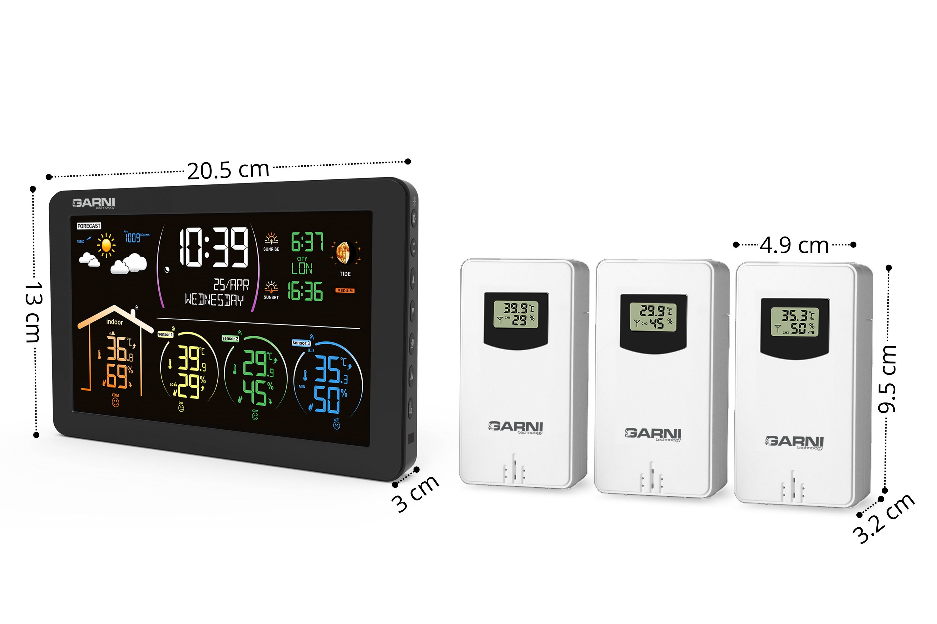 - 3 bezdrátová čidla GARNI 030H s displejem jsou součástí balení