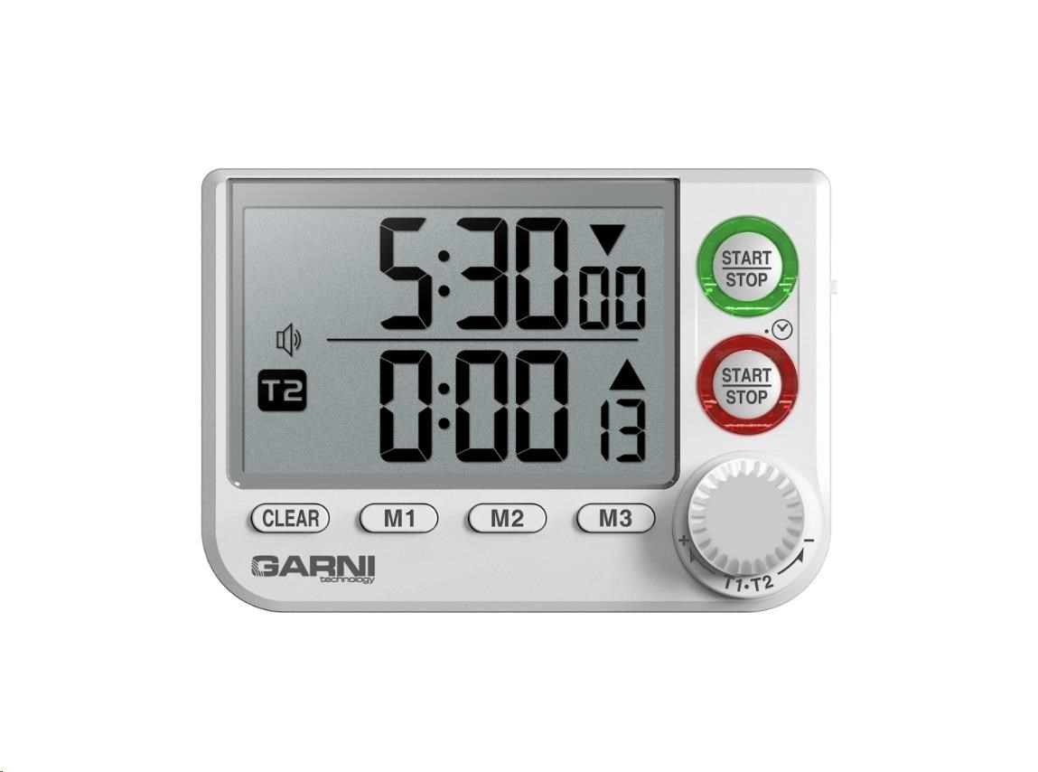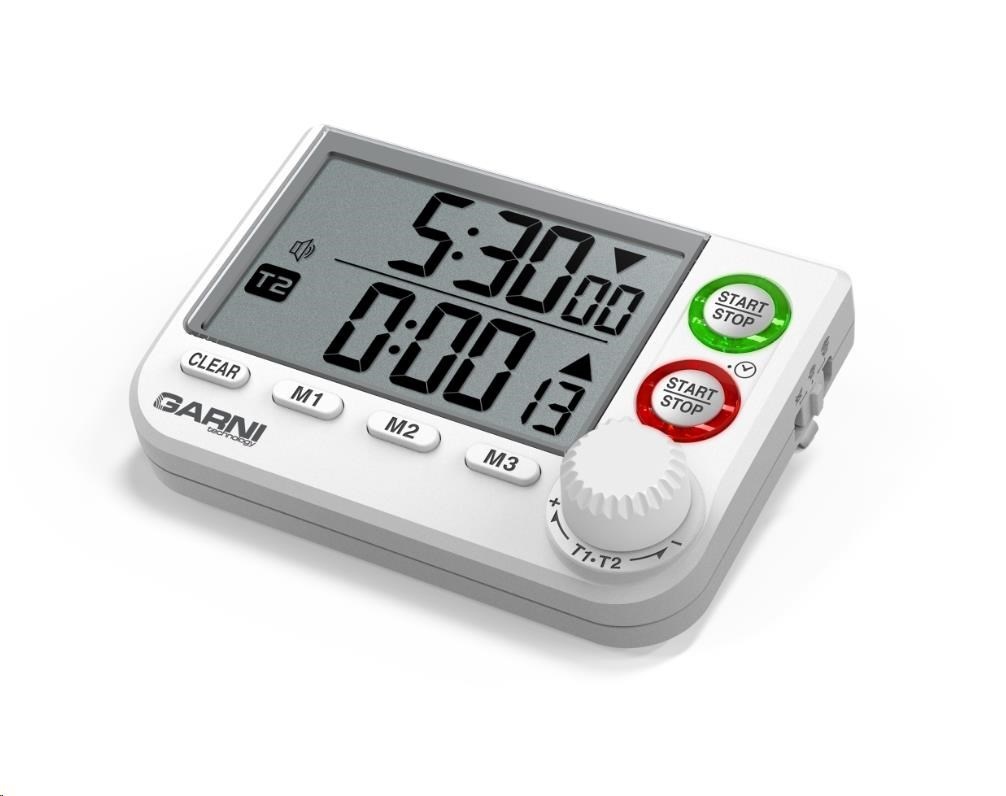 Časovač (minutka) se stopkami a hodinami s inteligentním otočným knoflíkem pro snadné a rychlé nastavení