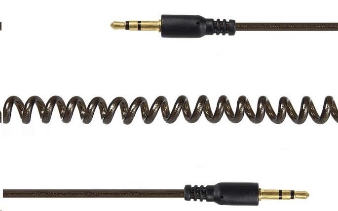 Spiral audio cable with two gold plated 3.5 mm stereo connectors
