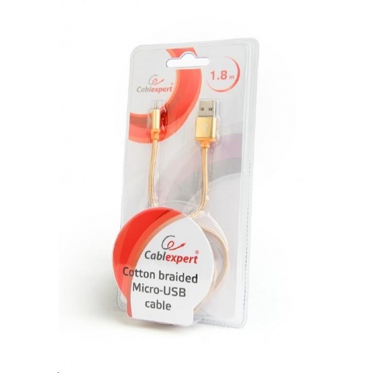 GEMBIRD Kabel USB A Male/Micro B Male 2.0, 1,8m, opletený, zlatý, blister