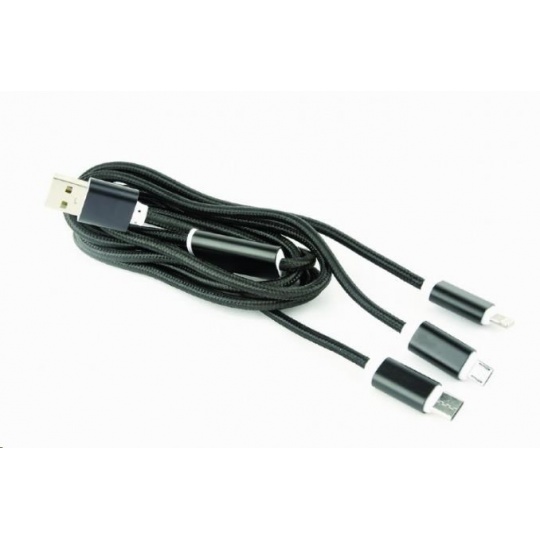 GEMBIRD Kabel USB A Male/Micro B + Type-C + Lightning, 1m, opletený, černý, blister