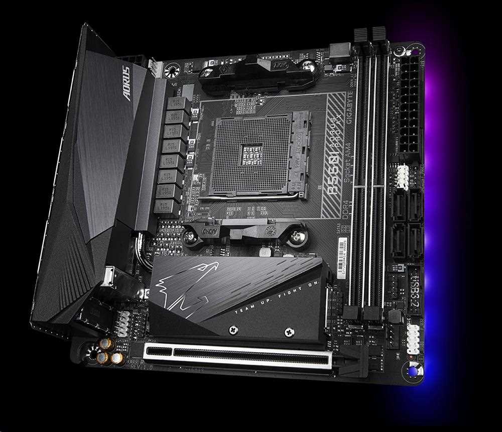 AMD B550 Mini-ITX AORUS Motherboard with Direct 8 Phases Digital VRM, Advanced Thermal Design with Extended VRM Heatsink, Thermal Baseplate, Dual PCIe 4.0/3.0 M.2 with Thermal Guard, Intel® WiFi 6E 802.11ax, 2.5GbE LAN, RGB FUSION 2.0, Q-Flash Plus