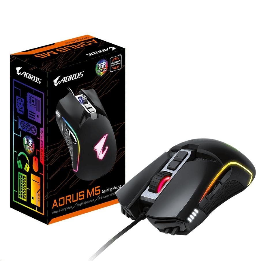GIGABYTE myš Gaming Mouse AORUS M5, USB, Optical, up to 16000 DPI