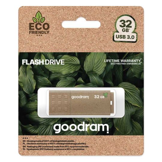 UME Eco Friendly USB flash disk je k dispozici v kapacitě 32 GB. Použité komponenty umožňují čtení rychlostí až 60 MB/s a zápis až 20 MB/s. Stejně jako na všechny ostatní USB flash disky GOODRAM se i na UME Eco Friendly vztahuje doživotní záruka výrobce. Nejvyšší kvalita = všechny USB Flash disky GOODRAM jsou vyráběny s vysoce kvalitními komponenty a procházejí vícestupňovými testy kvality, než se vydají na cestu do maloobchodních prodejen. Oddělení kontroly kvality zajišťuje, že každé USB je dokonale připraveno na mnoho let používání, a proto našim uživatelům garantujeme doživotní záruku.