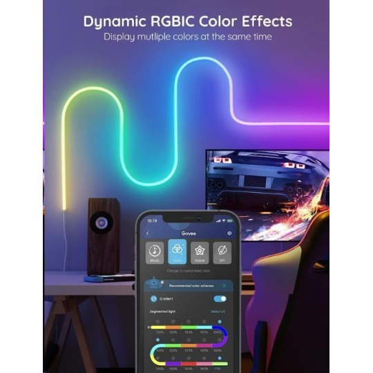 Ti, kteří mají rádi více barev, si zamilují funkci segmentového ovládání barev, které umožňuje technologie RGBIC. Přizpůsobte si barvu každé sekce pásku podle sebe a vytvořte tak unikátní osvětlení, které bude přesně podle vašich představ, vkusu a nálady.