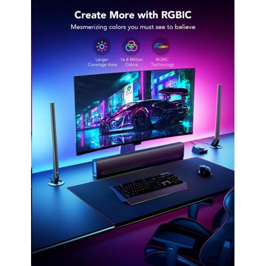 Vylepšete své herní, filmové a hudební zážitky s chytrými světelnými panely Govee Smart Gaming. 16 milionů barev s 62 režimy a 8 režimů pro synchronizaci s hudbou povznesou zážitek ze sledování televize nebo hraní her na novou úroveň. Ovládají se hlasem přes Siri, Amazon Alexa nebo Google Assistant, přes aplikaci nebo přes Smart Dual ovladač. Nebudete proto ani muset vstávat z gauče. Barevné podsvícení opticky zvětšuje obraz, šetří oči a má živostnost až 50.000 hodin.
