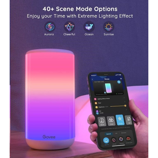 Govee LED Table Lamp 2 nabízí přednastavené scény, které jsou navrženy tak, aby přinesly do vašeho prostoru útulnou atmosféru pro každou příležitost. Tyto scény zahrnují vše od jemných, uklidňujících barevných přechodů ideálních pro relaxaci až po živé a energické efekty, které oživí jakýkoli večírek nebo posezení. Ať už hledáte osvětlení pro romantický večer, klidný večer s knihou nebo příjemnou společenskou atmosféru, vždy najdete ten správný režim, který váš prostor promění v útulné a inspirativní místo.