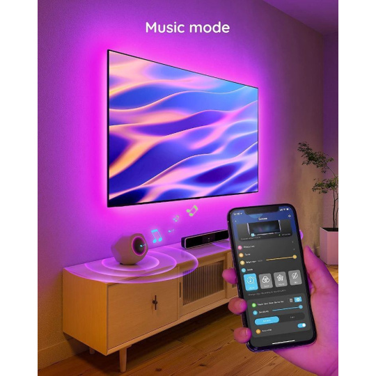 Díky vestavěnému mikrofonu se světelné pruhy hladce synchronizují s vaší hudbou nebo atmosférickými zvuky vydávanými z vašeho TV/PC při sledování filmů nebo hraní her.