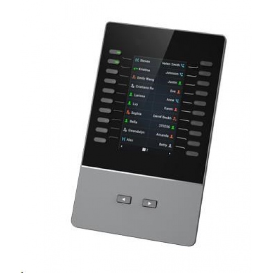 GBX20 je podsvícený LCD rozšiřující modul k IP telefonům GXV3350 a GRP2615. Modul obsahuje 20 dvoubarevných kláves a 2 klávesy se šipkami pro přepínání stránek. Na každém GBX20 můžete mít až 40 kontaktů/BLF (vidíte stav interní klapky). Při propojení až 4 GBX20, ke kompatibilním telefonům Grandstream, získáte celkem až 160 kontaktů/BLF.