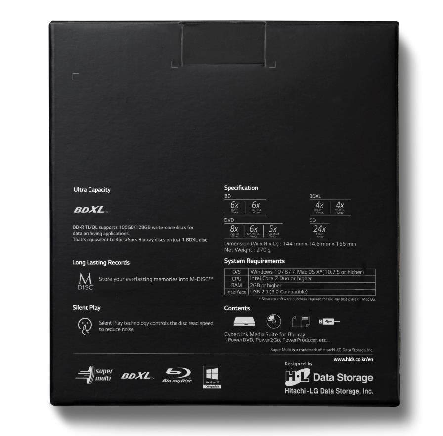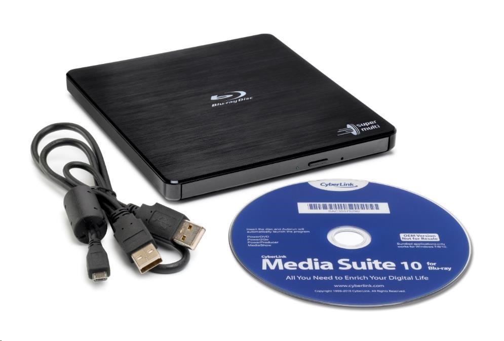 HITACHI LG - externí mechanika BD-W/CD-RW/DVD±R/±RW/RAM/M-DISC BP55EB40, Black, box+SW