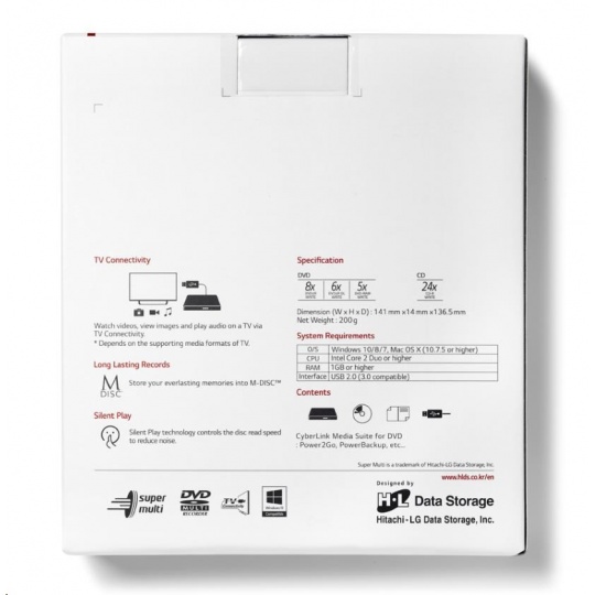 HITACHI LG - externí mechanika DVD-W/CD-RW/DVD±R/±RW/RAM GP57ES40, Slim, Silver, box+SW