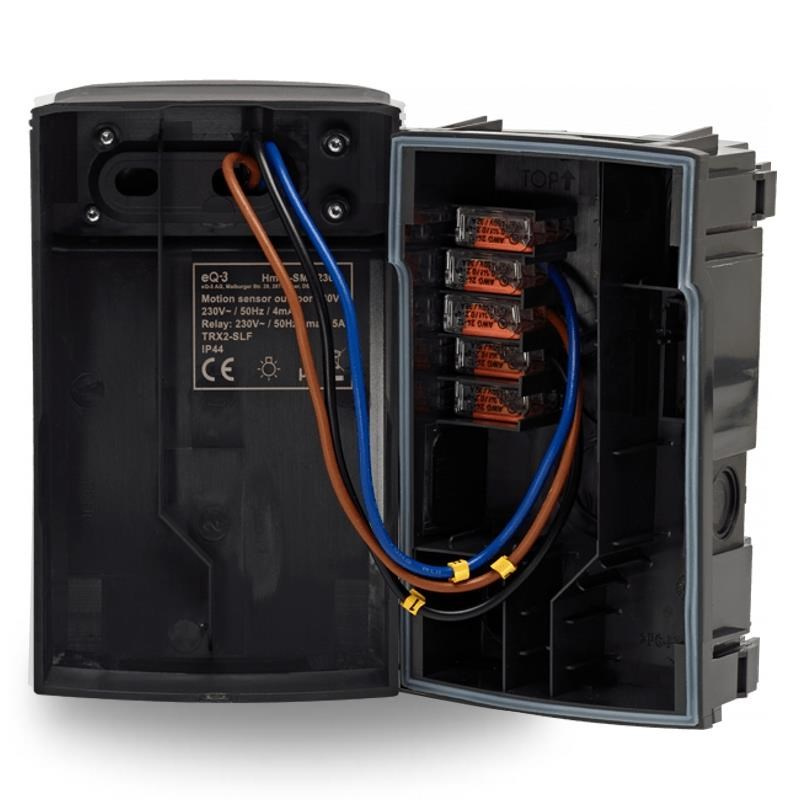 Díky širokému teplotnímu rozsahu od -20 do +55 °C a krytu odolnému proti povětrnostním vlivům (IP44) lze detektor pohybu bez obav instalovat venku nebo například v garážích. Pro optimální dosah detekce se doporučuje montážní výška 2,5 m.