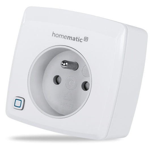 Spínaná bezdrátová zásuvka (HmIP-PSM-PE) s funkcí měření umožňuje spínání připojených zařízení. Umožní spínat a vypínat připojené spotřebiče, měřit jejich spotřebu energie, napětí, proud a výkon. Připojená zařízení lze ovládat manuálně přímo tlačítkem na zásuvce nebo vzdáleně v kombinaci s Centrální jednotkou (HmIP-HAP) a mobilní aplikací Homematic IP.