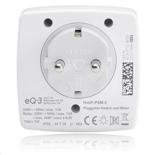 Bezdrátová Spínaná zásuvka s měřením spotřeby (HmIP-PSM-2) je součástí systému chytré domácnosti Homematic IP a umožňuje prostřednictvím mobilní aplikace snadno ovládat připojené elektrické spotřebiče, měřit elektrické veličiny a současně funguje i jako opakovač signálu pro ostatní komponenty v systému.