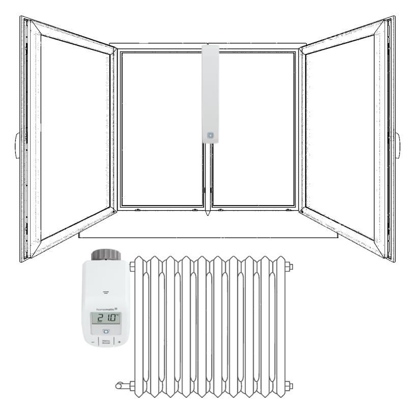 V autonomní sadě pro regulaci vytápění (HmIP-SK9) plní okenní a dveřní senzor HmIP-SWDM v kombinaci s bezdrátovou Termostatickou hlavicí Basic HmIP-eTRV-B), funkci magnetického kontaktu, který v případě detekce otevření okna předá informaci a termostatická hlavice automaticky sníží přísun horké vody do radiátorového tělesa. Jakmile se okno zavře, radiátor začne znovu zvyšovat teplotu v místnosti.