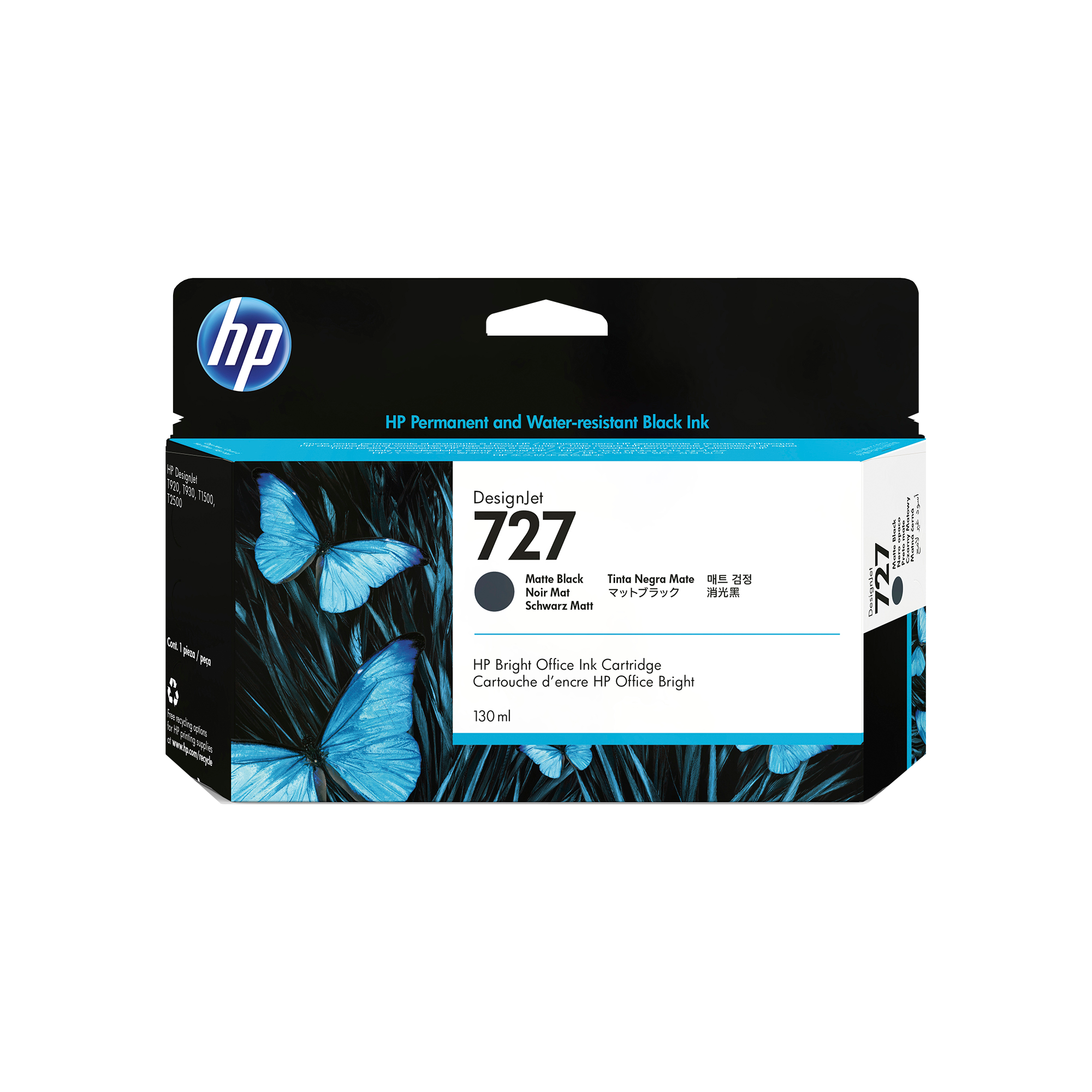 HP 727 Black Mate Ink Cart, 130 ml, B3P22A