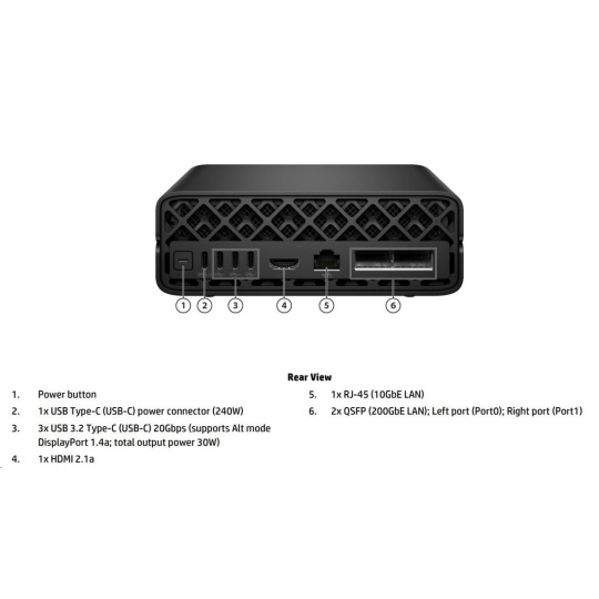 Provedení počítače:Mini-PC; Podpora AI; Operační systém:Linux; Velikost paměti RAM (GB):128; Typ disku:SSD; SSD Kapacita (GB):1000; Rozhraní:LAN, USB Type-C; Druh optické mechaniky:Bez optické mechaniky; Využití PC:Profesionální.
