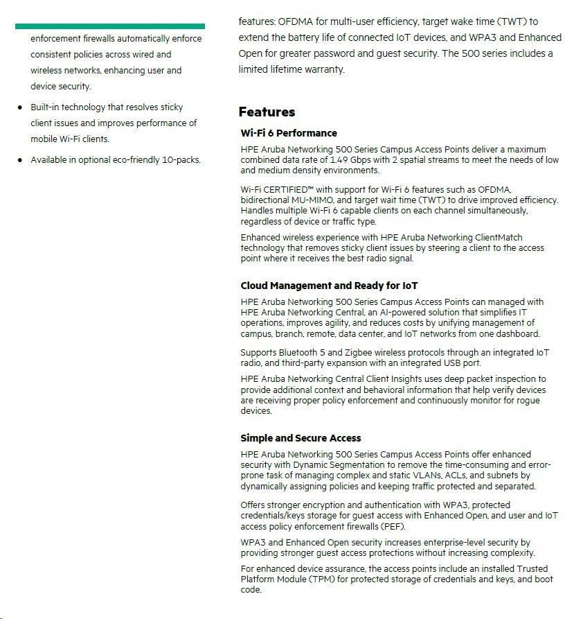 Odkaz na web výrobce: https://www.arubanetworks.com/assets/ds/DS_AP500Series.pdf