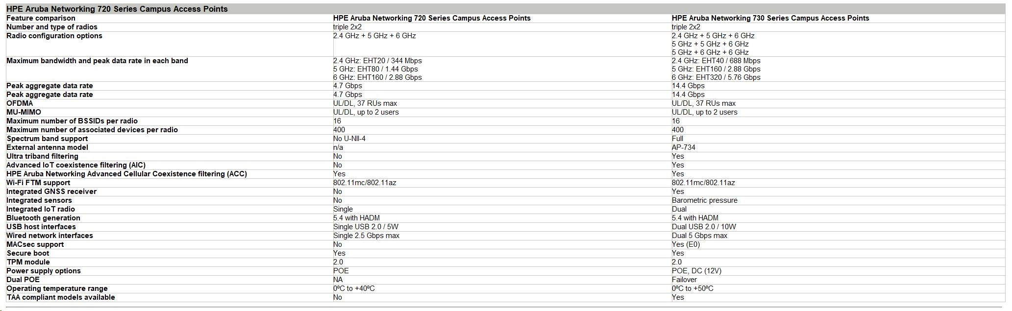 HPE Aruba 720 vs 730 Series Access Points Comparison