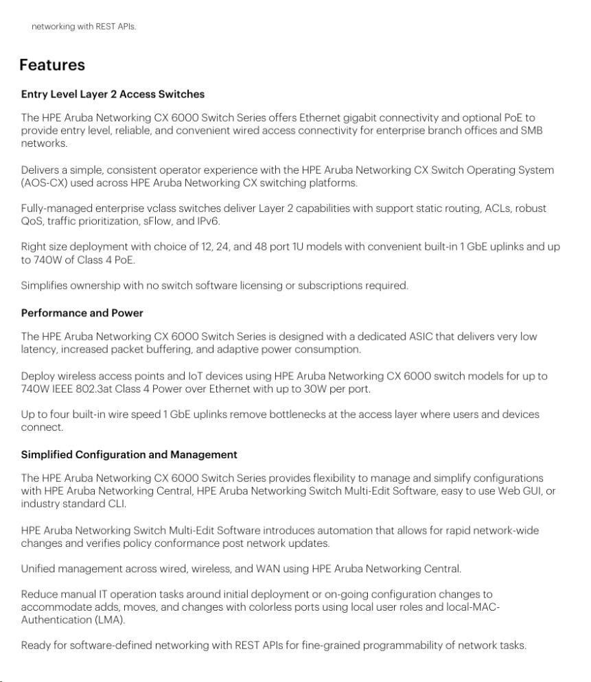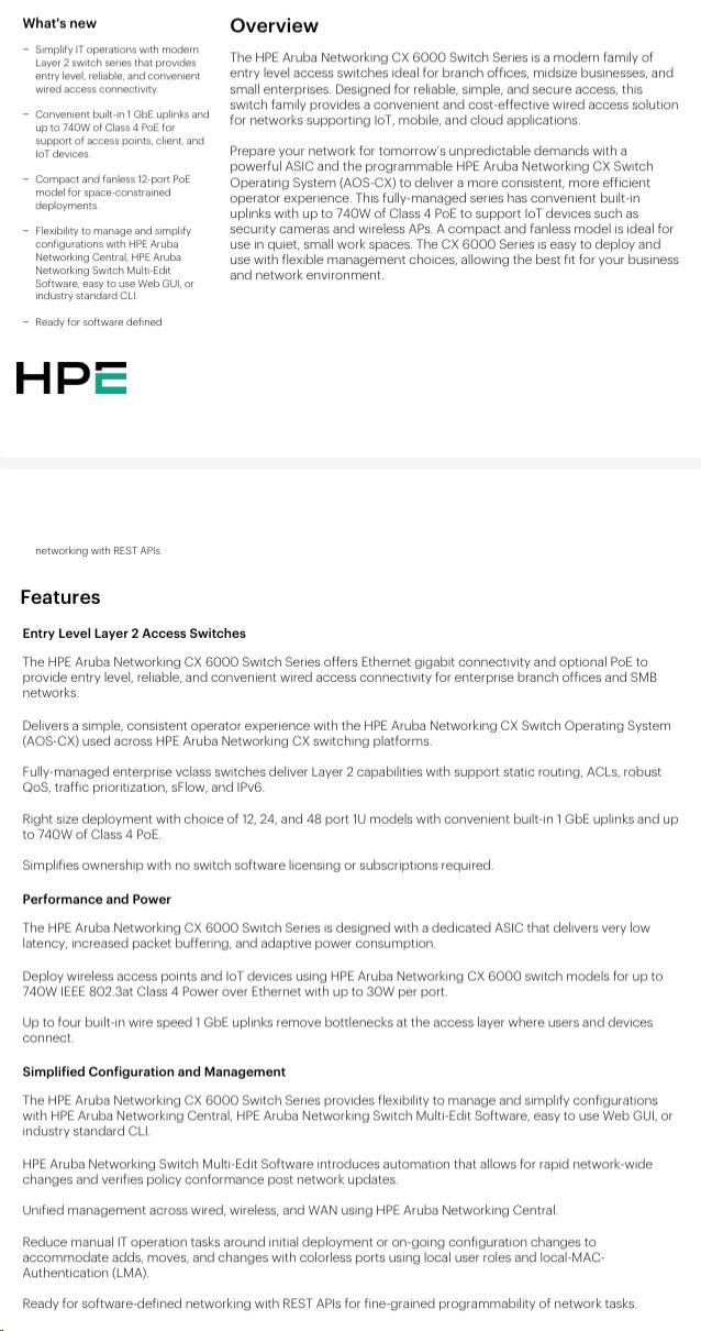 HPE Aruba Networking CX 6000 12G Class4 PoE