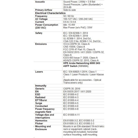 Specification 6000 24G 4SFP Switch (R8N88A)