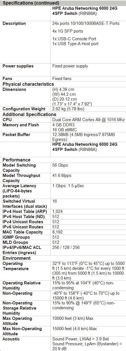HPE Aruba Networking 6000 Switch Specifications