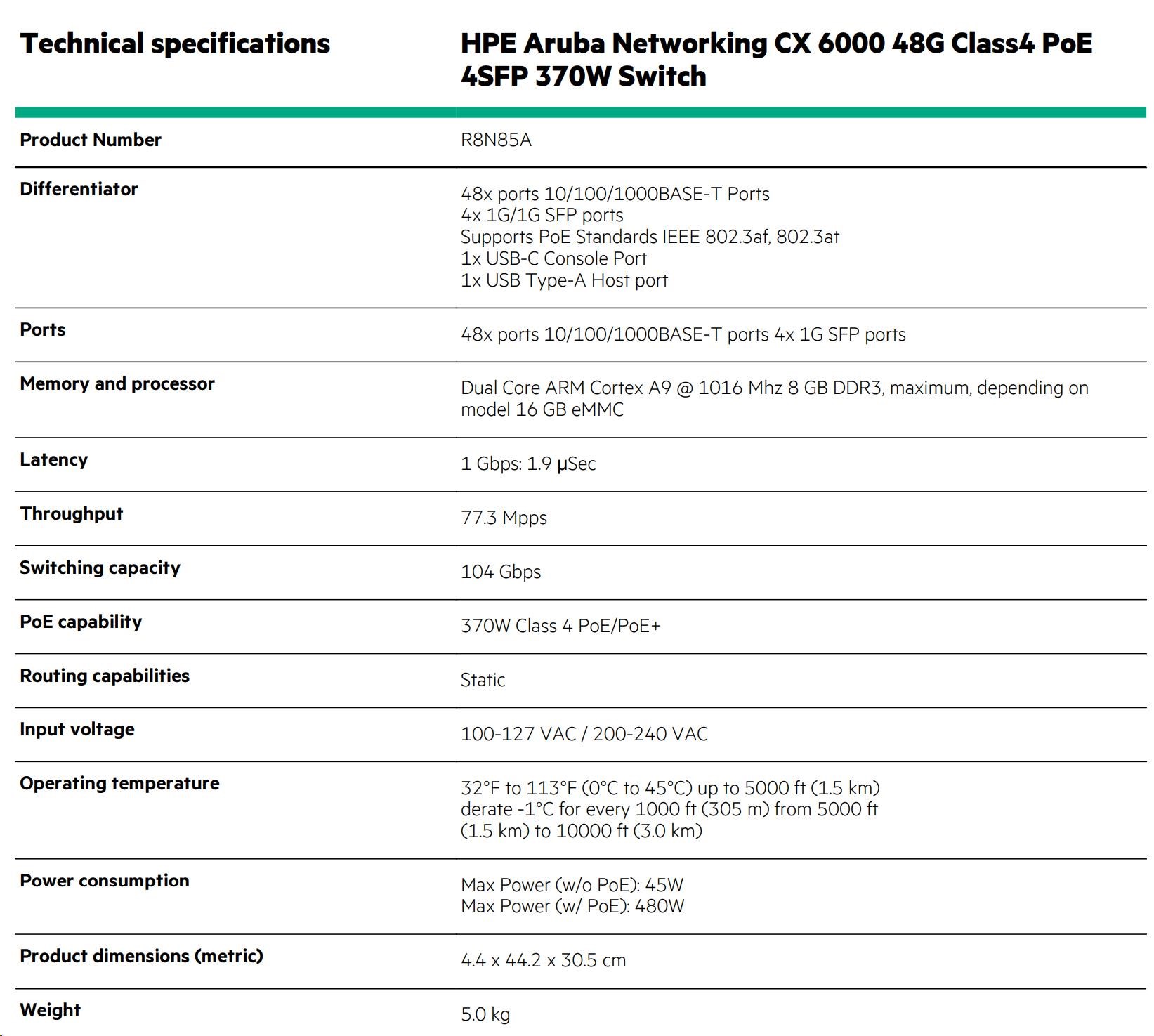 HPE Aruba Networking CX 6000 48G 4SFP Switch.