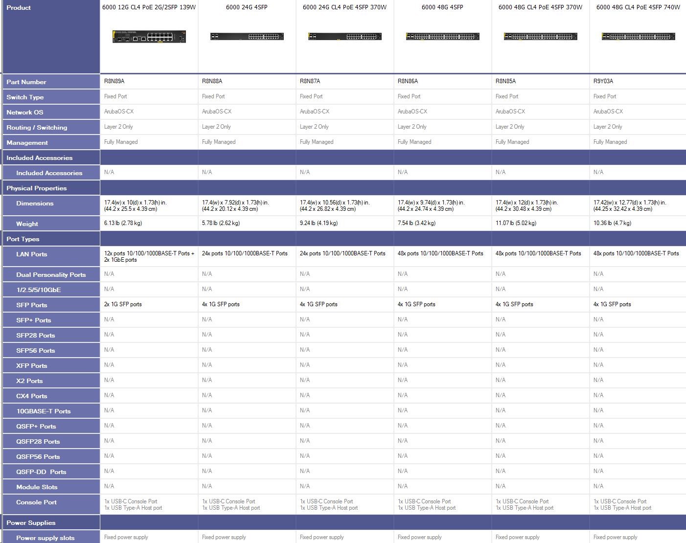 Aruba 6000 48G Class4 PoE 4SFP 370W Switch (R8N85A)