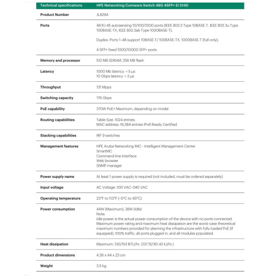 | HPE Networking Comware Switch 48G 4SFP+ EI 5140 | JL829A | |