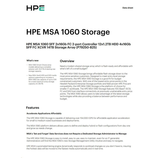 HPE MSA 1060 SFF 2x16Gb FC 2-port Controller 12x1.2TB HDD 4x16Gb SFP FC XCVR 14TB Storage Array Smart Choice