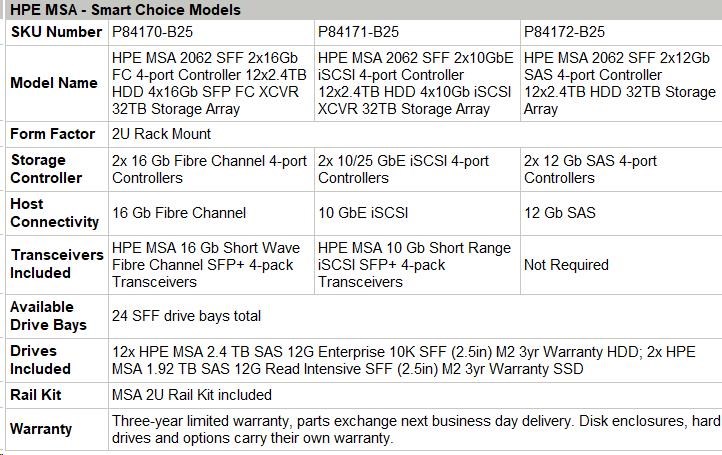 HPE MSA 2062 SFF 2x16Gb FC 4-port Controller 12x2.4TB HDD 4x16Gb SFP FC XCVR 32TB Storage Array Smart Choice.