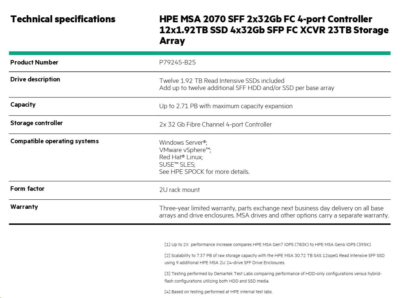 HPE MSA 2070 SFF 2x32Gb FC 4-port Controller 12x1.92TB SSD 4x32Gb SFP FC XCVR 23TB Storage Array Smart Choice