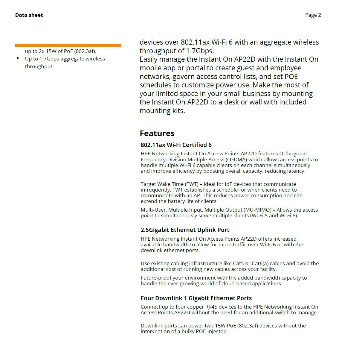HPE Aruba Instant On Access Point AP22D Bundle with PSU Dual Radio 2x2 Wi-Fi 6 (EU) AP22D (desktop or wallmount)