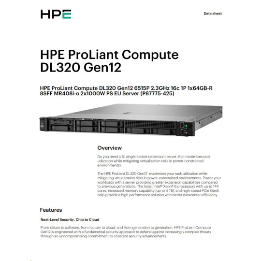 HPE PL DL320 Gen12 6505P (2.2/12C) 1x64G (P69728) 2x480G MR408i-o 8SFF 2x1000W 1GbE NBD333 Smart Choice.
