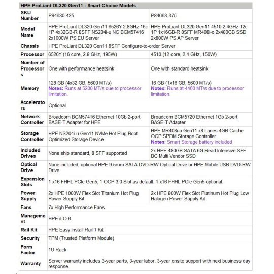 HPE PL DL320g11 6526Y (2.8/16C) 4x32G (p64706) 8SFF NS204(2x480G) 2x1000W 2p10GT 7F Smart Choice.