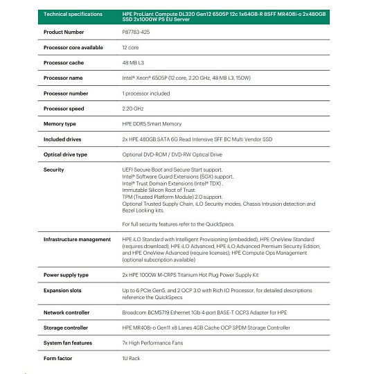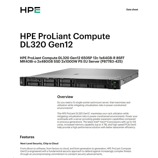 HPE PL DL320g12 6505P (2.2/12C) 4x32G (P69727) MR408i-o 8SFF 2x1000W NBD333 Smart Choice.