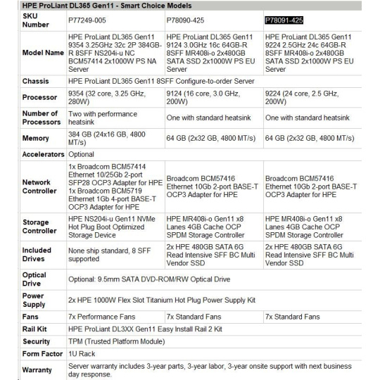 HPE PL DL365g11 AMD Epyc 9224 (2.5/24C) 2x32G 2x480G MR408i-o/4G ocp2p10G-T 8SFF 2x1000W 1U Smart Choice.