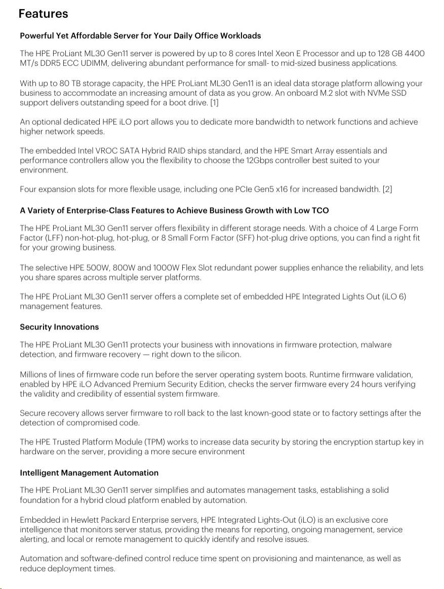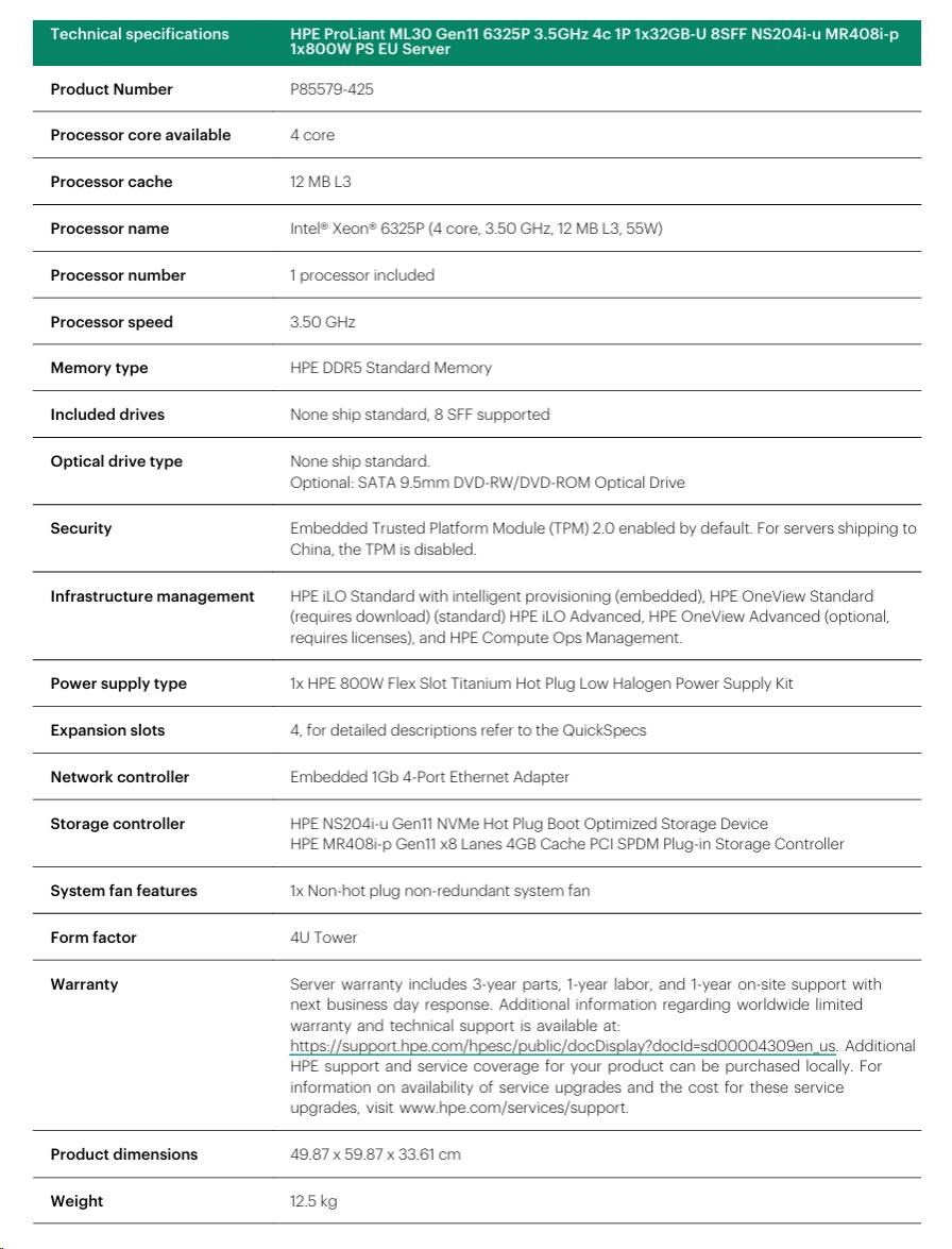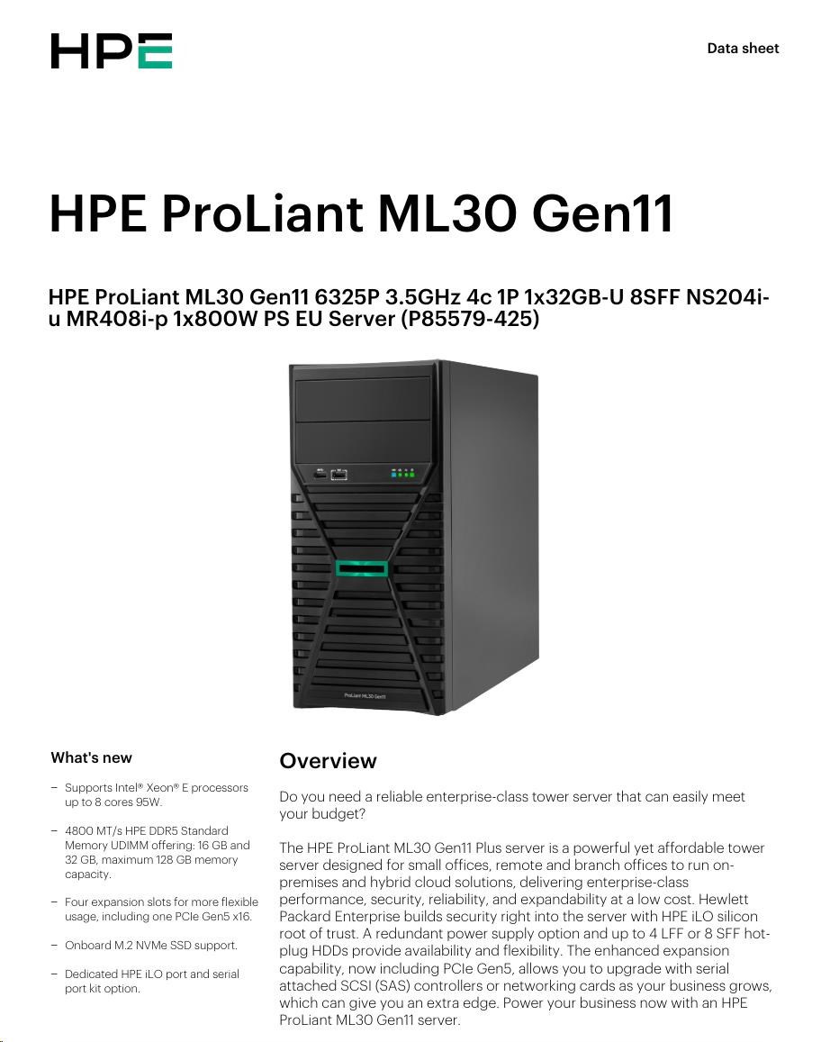 HPE PL ML30g11 6325P (3.5G/4C8T) 1x32G 8SFF NS204i-u(2x480g) MR408i-p/4G 2x800W 3/1/1 Smart Choice.
