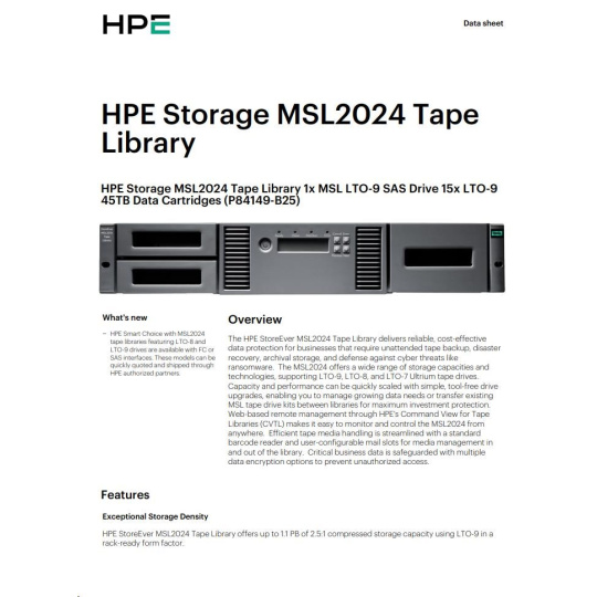 HPE Storage MSL2024 Tape Library 1x MSL LTO-9 SAS Drive 15x LTO-9 45TB Data Cartridges