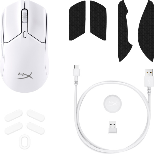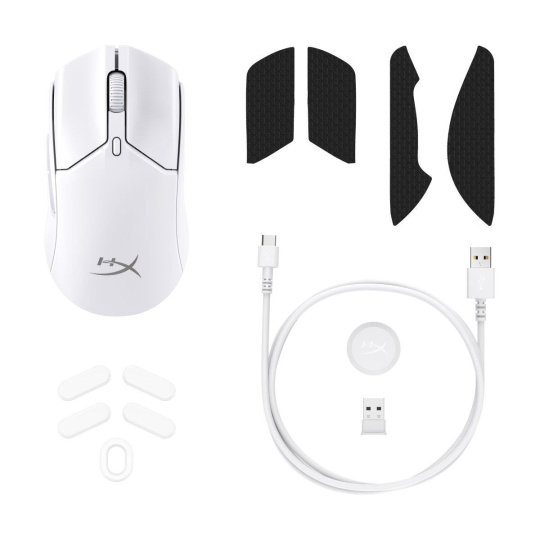 | Obsah balení | HyperX Pulsefire Haste 2 Mini Wireless, protiskluzové pásky HyperX, kluznice s nízkým třením, kabel USB-C na USB-A, bezdrátový USB modul, prodlužovací USB adaptér, úvodní příručka. |