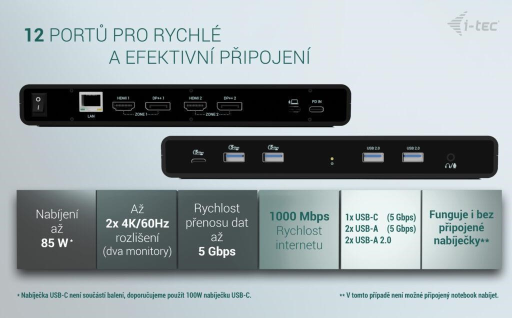 Výkonná, přitome cenově dostupná dokovací stanice, která podporuje výstup až na dva externí monitory ve vysokém rozlišení, a to až 4K/60 Hz. Dokovací stanici lze použít prakticky se všemi notebooky, protože podporuje připojení ke všem běžným portům: 3.0, USB-C, USB4 a Thunderbolt“ 3/4 a zároveň podporuje všechny běžné současné operační systémy.